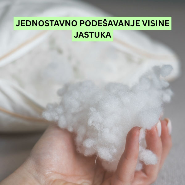 Unutarnja obloga sadrži bambusova vlakna koja upijaju vlagu i održavaju jastuk higijenskim. Punjenje od visokokvalitetnih mikrovlakana pruža luksuznu potporu za dugotrajnu udobnost.