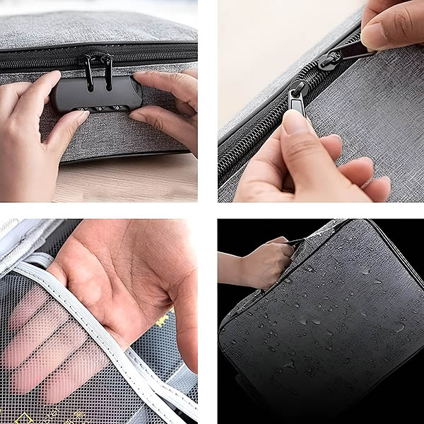 Zabrinuti zbog sigurnosti vaših važnih dokumenata i dragocjenosti? Ova vodootporna torba opremljena je sigurnom bravom na kod, osiguravajući da vaši dokumenti, novac i nakit ostaju nepristupačni drugima.